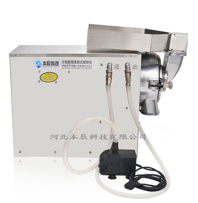 水冷降溫式三七超細粉碎機LF-60S是在原有普通型三七粉碎機LF-50的基礎上,通過(guò)在粉碎室周邊和主軸部分加裝水冷夾套,實(shí)現冷卻水循環(huán)降溫達到低溫粉碎的一款新型粉碎機產(chǎn)品,該機在粉碎過(guò)程中由于冷卻水循環(huán)使得粉碎溫度大幅降低,從而實(shí)現三七生粉,熟粉一機粉碎,是三七粉碎機中集大成者,也是目前市場(chǎng)上水冷粉碎機的。